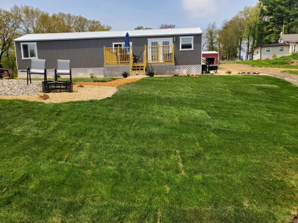 There is a private deck, gas grill, fire pit, and picnic table. Great view overlooking the Big Cats! Check out the cabin photos.